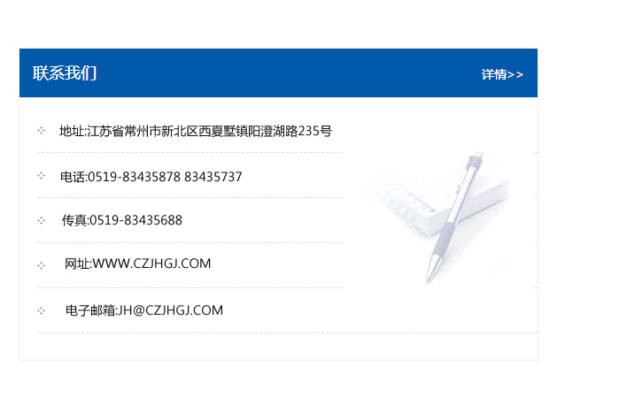 地址:常州市新北區友邦商務大廈1幢16、17層  電話:0519-85101652  傳真:0519-85112595  郵編:213022  網址:www.cz-jiayue_cn.bruim.com  郵箱:xiajifengaa@163.com